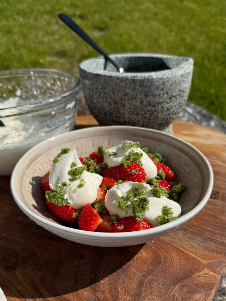 Tjukkmjølkspannacotta med lune bær. Foto: Geir Foden.