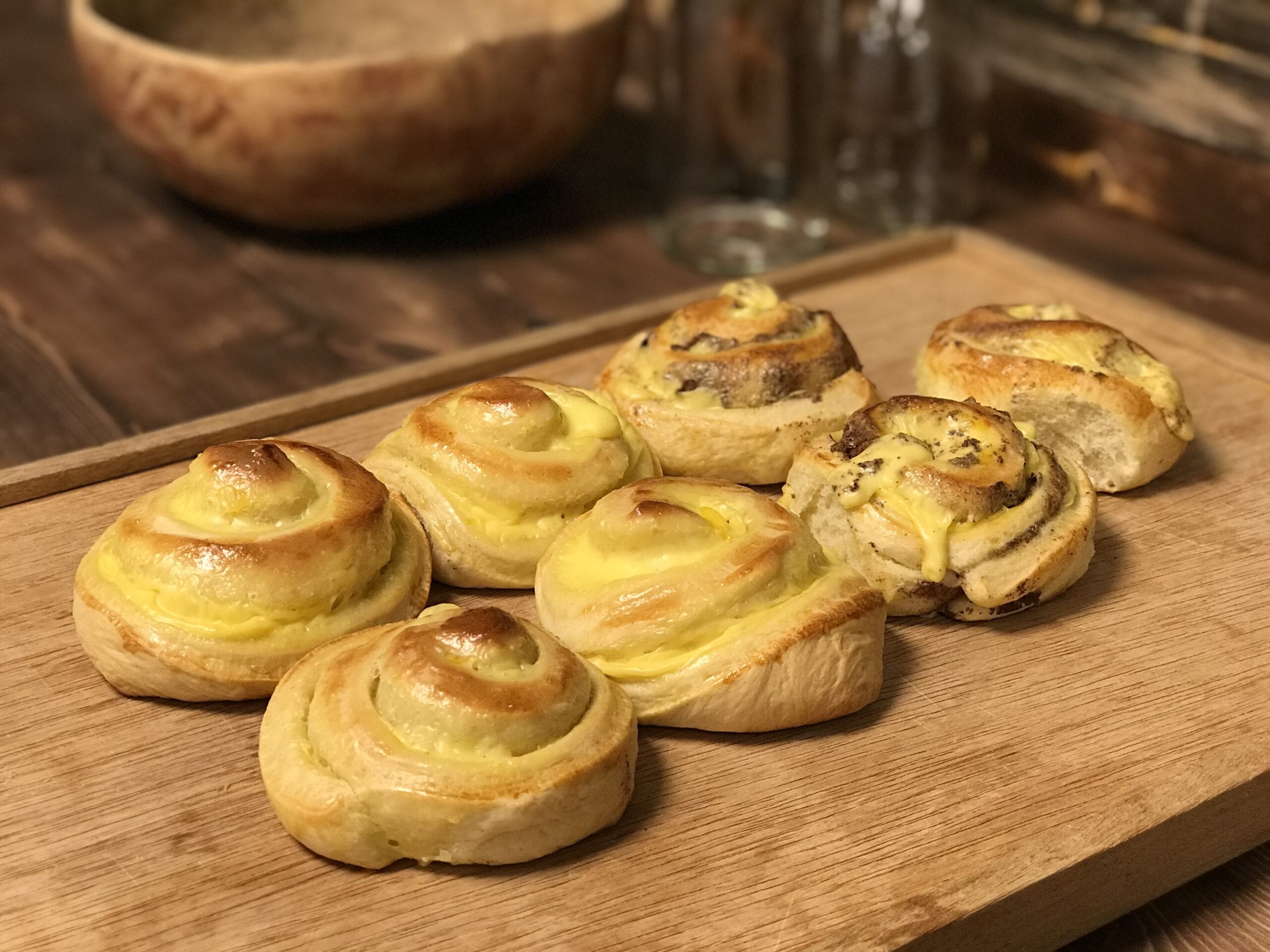 Ingenting slår duften av nystekte boller! Vaniljekrem og boller går som hånd i hanske. Ved å elte inn smøret til slutt får du en deig som er smidig og lett å jobbe med. Her kan du lage snurrene med eller uten kanel etter eget ønske.