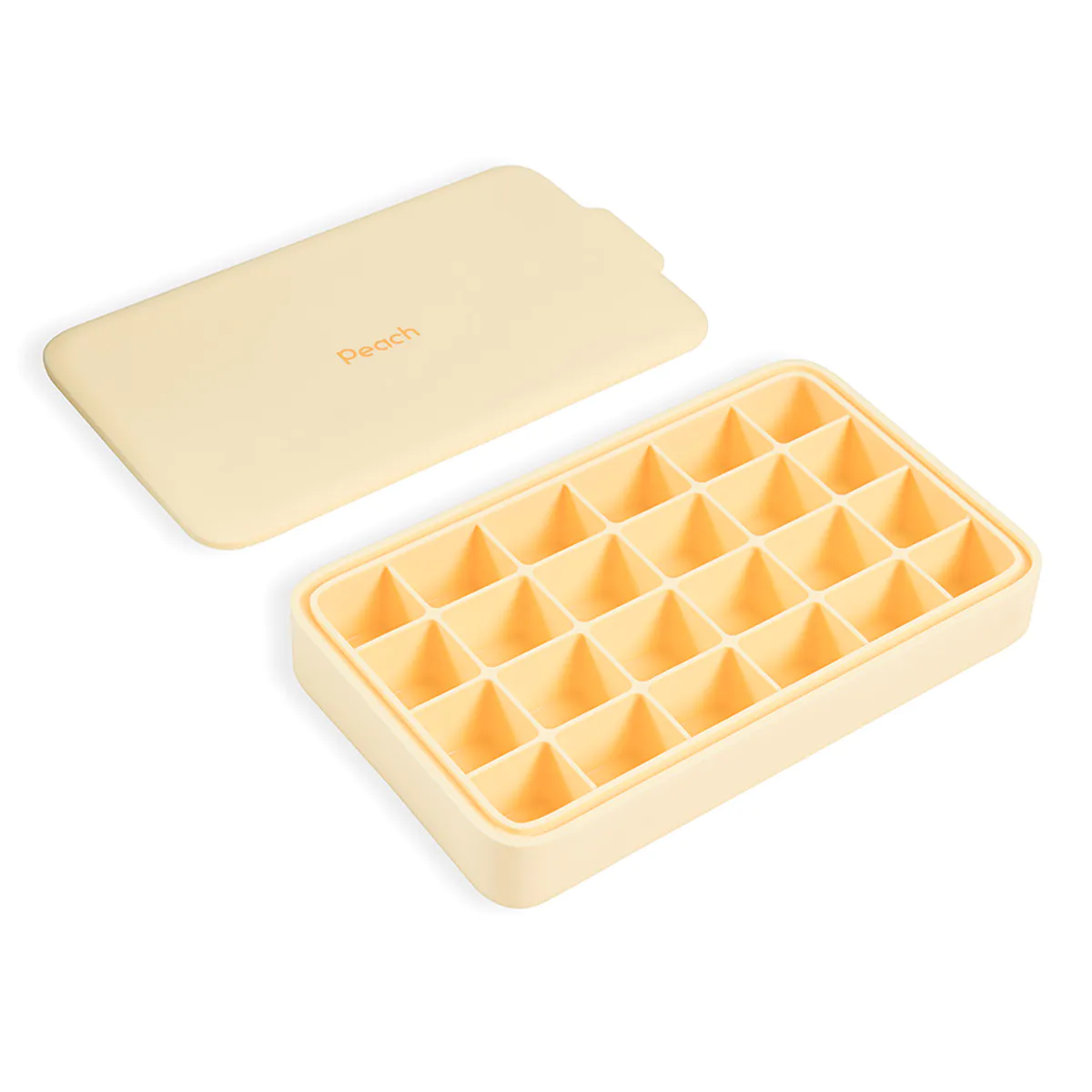 Dette er en 100% plastfri isbitform laget i ren matgradsilikon. Isbitformen rommer 24 isbiter og kommer med et praktisk lokk i silikon. Lokket er praktisk fordi det gjør at du kan stable flere isbitformer oppå hverandre i frysen. Isbitformen i silikon er myk og føyelig, og det er lett å dytte isbitene ut av formen.
