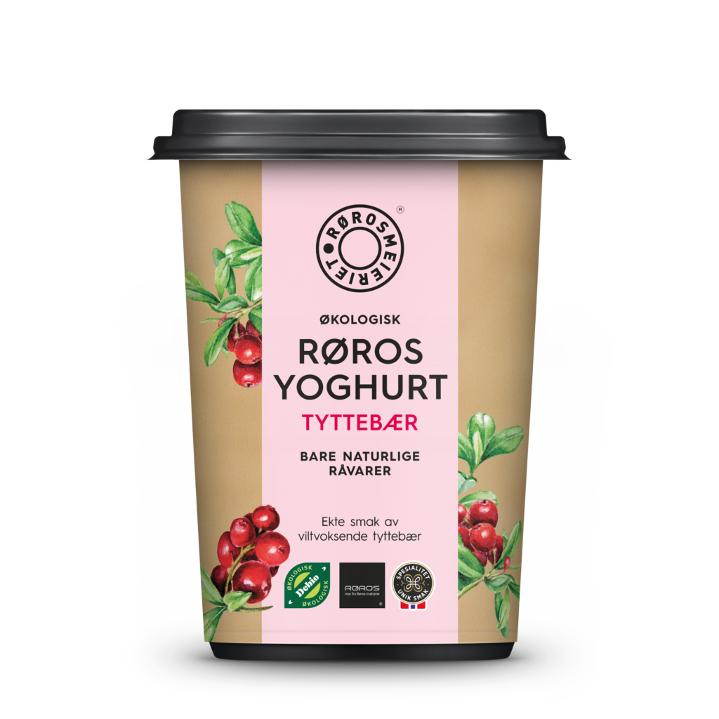 Vår egen yoghurt er en norsk økologisk yoghurt med mild, frisk og fyldig smak. Røros Yoghurt Tyttebær har en mild og søt smak av tyttebær.