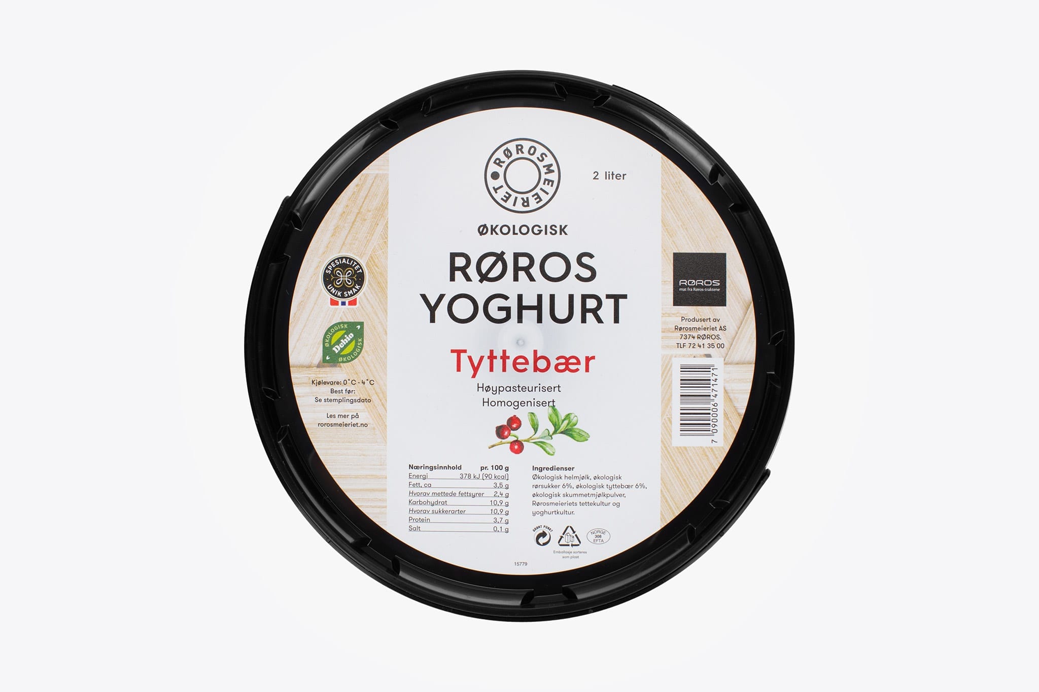 Helmelk*, tyttebær 6%*, uraffinert rørsukker 6%*, skummetmelkpulver*, yoghurtkultur og Rørosmeieriets tettekultur*.
