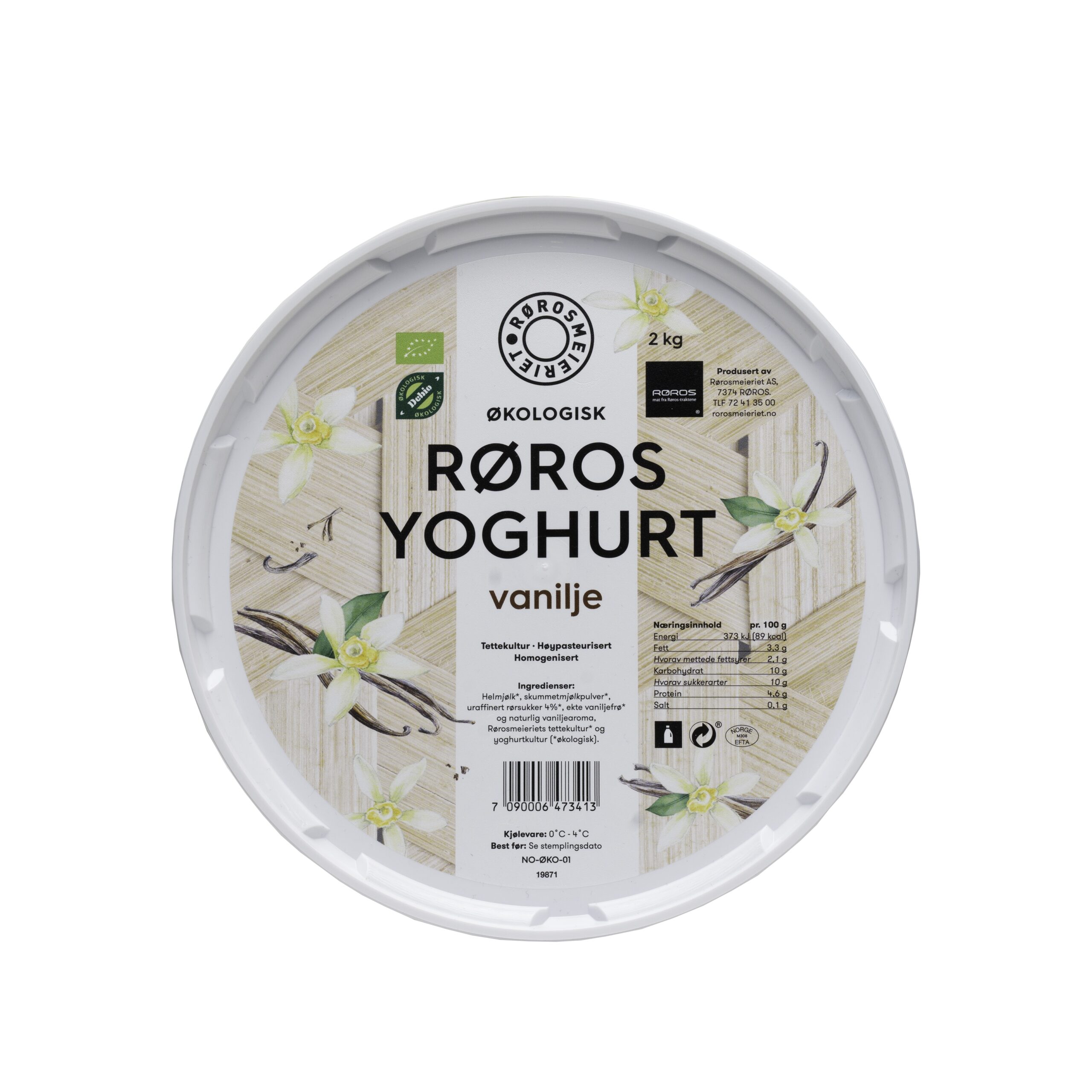 Helmjølk*, skummetmjølkpulver*, uraffinert rørsukker 4%*, ekte vaniljefrø* og naturlig vaniljearoma, Rørosmeieriets tettekultur* og yoghurtkultur.